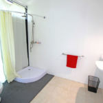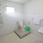 The 2nd bedroom is in upstairs, offering queen-sized bed, air-conditioning, white clean ceramic floor, bedside tables with lamps, wooden table with chair and dressing mirror. The bathroom have rain shower with hot & cold water running, wash basin with wooden-framed dressing mirror.